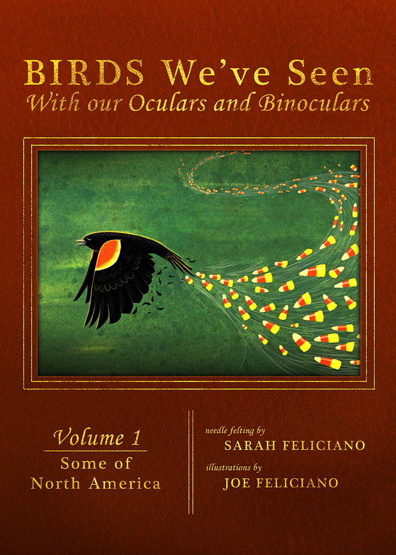 "Birds We've Seen With our Oculars and Binoculars Volume 1" A collection of illustrations and felt work of birds from the backyards of Chicagoland to some State and National Parks across the United States. Part art book. Part field guide. Part travel journal. 144 pages covering 66 individual bird species me and my wife have seen together on our travels. Everything from sketches to needle felted sculptures and photos collected in one volume.