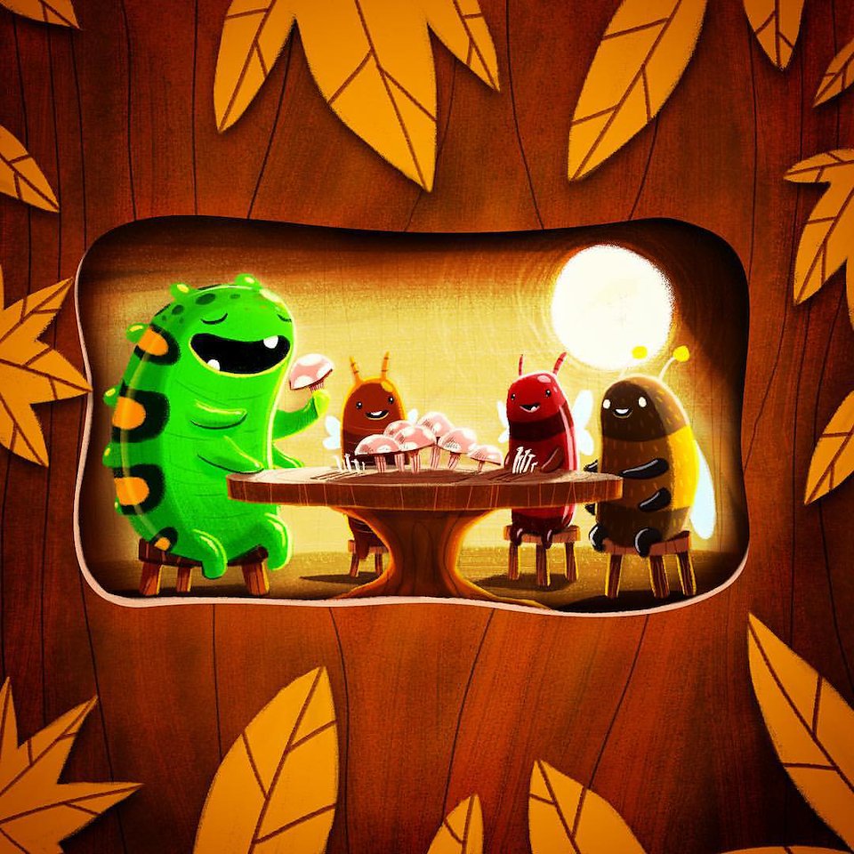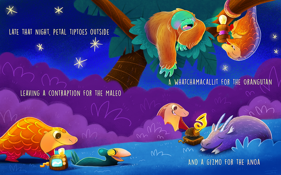 Sample 2 page spread for picture book project dealing with social anxiety and endangered species.
